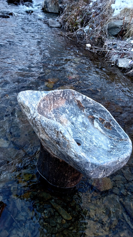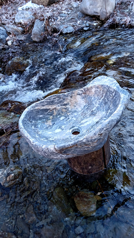 ساخته شده از سنگ یک تکه رودخانه ای با زمینه خاکستری آبی و رگه های سفید